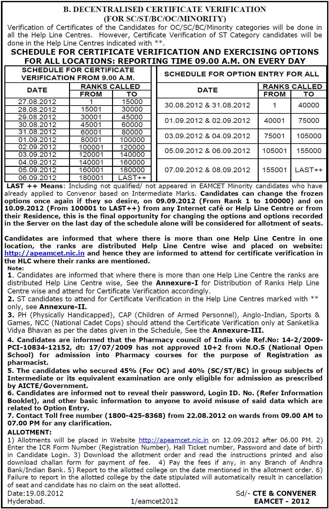 1) EAMCET 2012 :: Detailed Counseling Notification